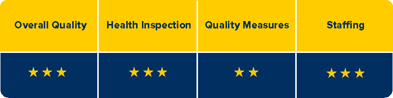 The CMS Five-Star Rating system helps consumers, families, and caregivers more easily compare nursing homes and identify areas to inquire about. This rating is updated quarterly.